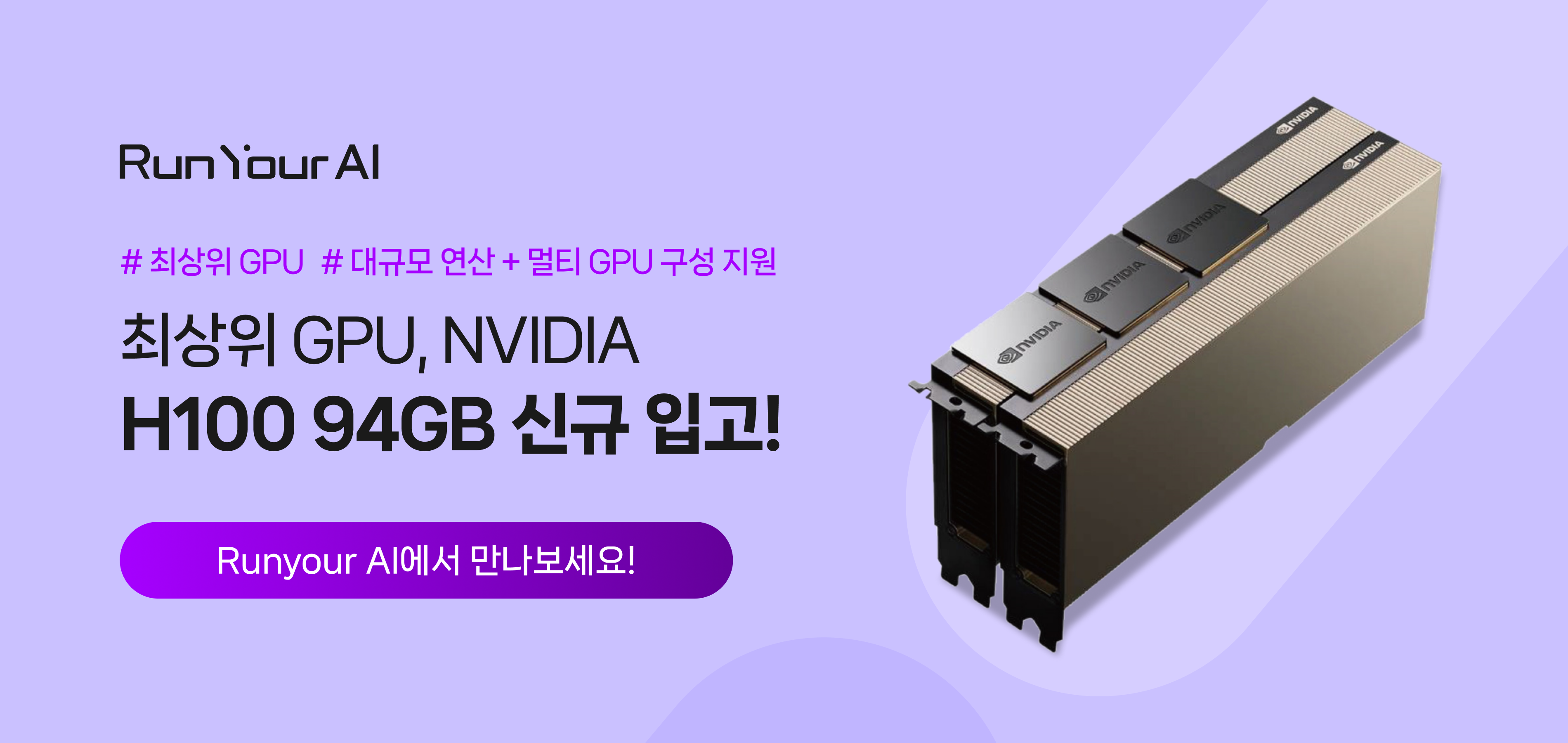 👉 지금 바로 Runyour AI에서 새로운 H100 94GB를 체험해보세요!